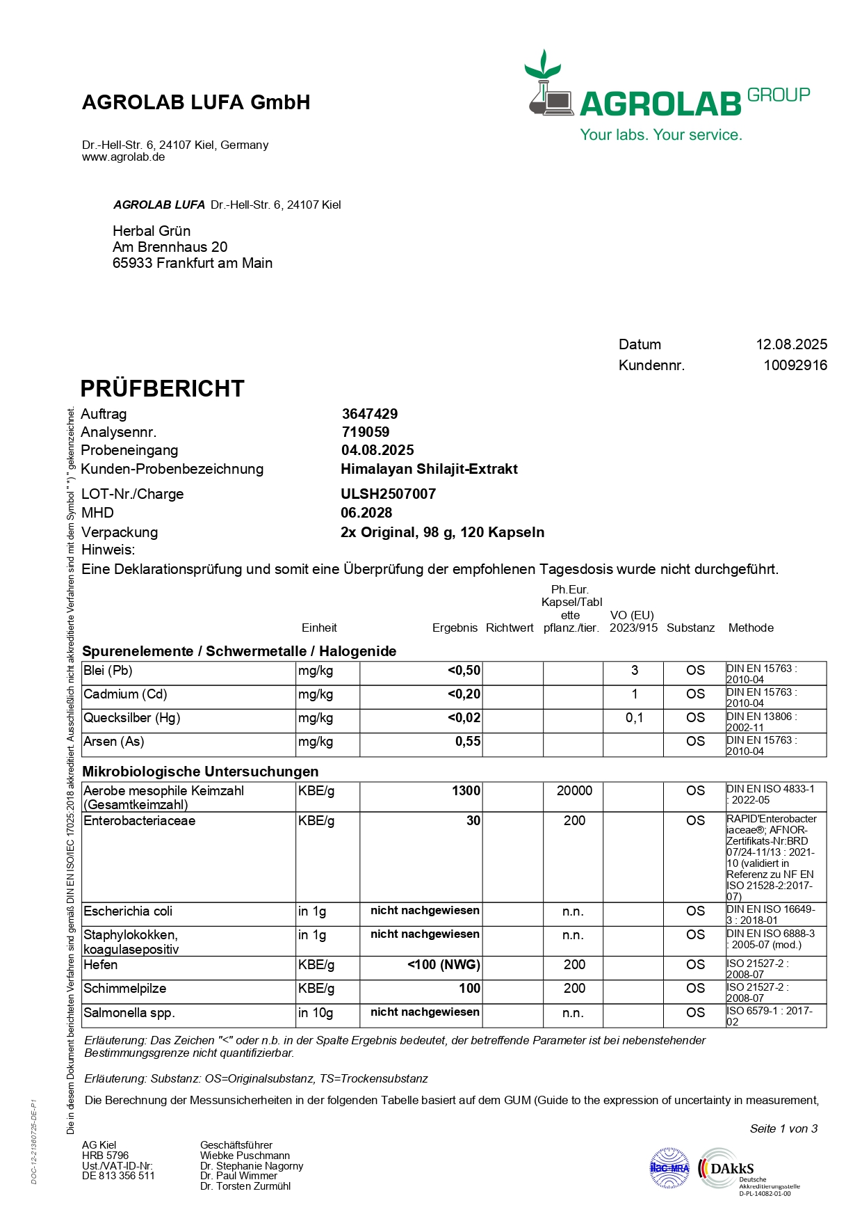 Himalayan Shilajit-ExtraktPrüfbericht